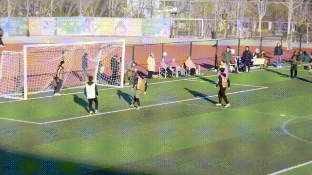 这次挑战规则很简单——现场专业球员1:1还原空门不进的传球路径,奶奶们作为最终接球射门的球员,把球接过来、再踢进去就算赢。