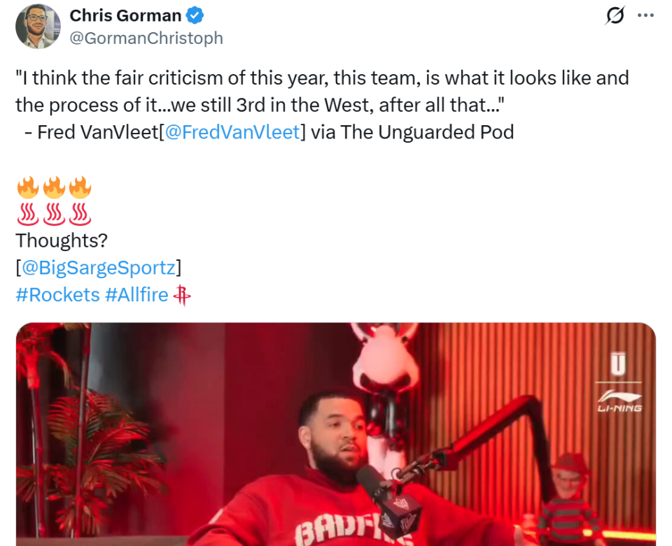 由于遭遇十字韧带撕裂大伤,范乔丹在养伤期间开启同名个人播客节目《Fred VanVleet》锐评联盟热点事件,本赛季状态火爆的马刺队自然成为其讨论的话题之一。