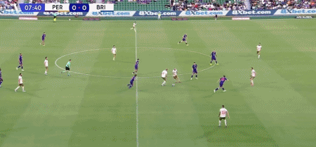 第19分钟,奥斯勒助攻,塔加特劲射破门,珀斯荣光1-0